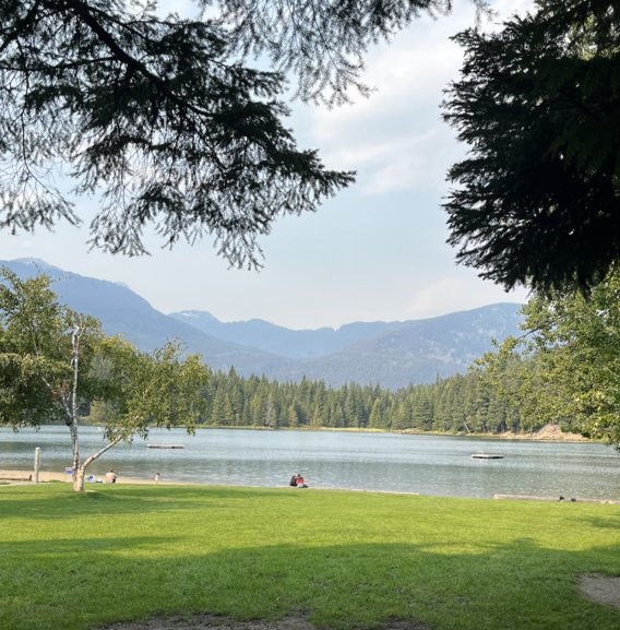 After our meeting with Pinichio, we connected with some gravel that led us to what locals call Whistler Beach on the now-discovered lake. We savored the views and a scrumptious PBJ lunch. The reward for our afternoon techy, narrow, and punchy pedal was a spectacular view of Green Lake atop a rock outcropping. Be sure to start on Grand Wazoo, continue on ‘I'm Not Satisfied,' to Central Scrutinizer, and finally to my favorite, ‘Muffin Man,' which led to a spectacular ridge trail that opened up to views of lakes, valleys, and distant snowcaps all in one frame.