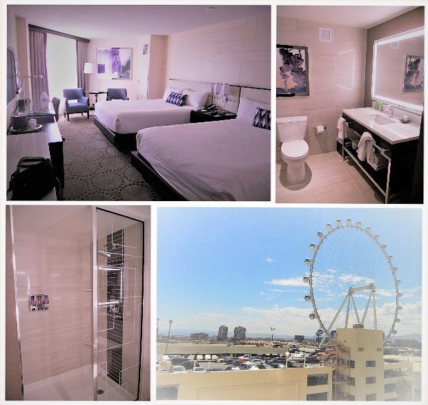 Let’s not forget the High Roller! This grand ferris wheel offers chivalrous views of the Las Vegas Strip! Our first two nights were spent in the heart of the Vegas Strip at Harrah’s Resort. From our room, we had a great view of the High Roller.
