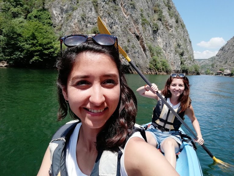We first did the boat tour with the cave visit, totally worthy and recommended. It cost 400 denar per person, which is about 7 euro. Then we did half an hour of kayaking, first time for us! It was amazing, and we didn't turn our kayak around, thank God haha this one cost 250 denar for two people, so 4.5 euro.