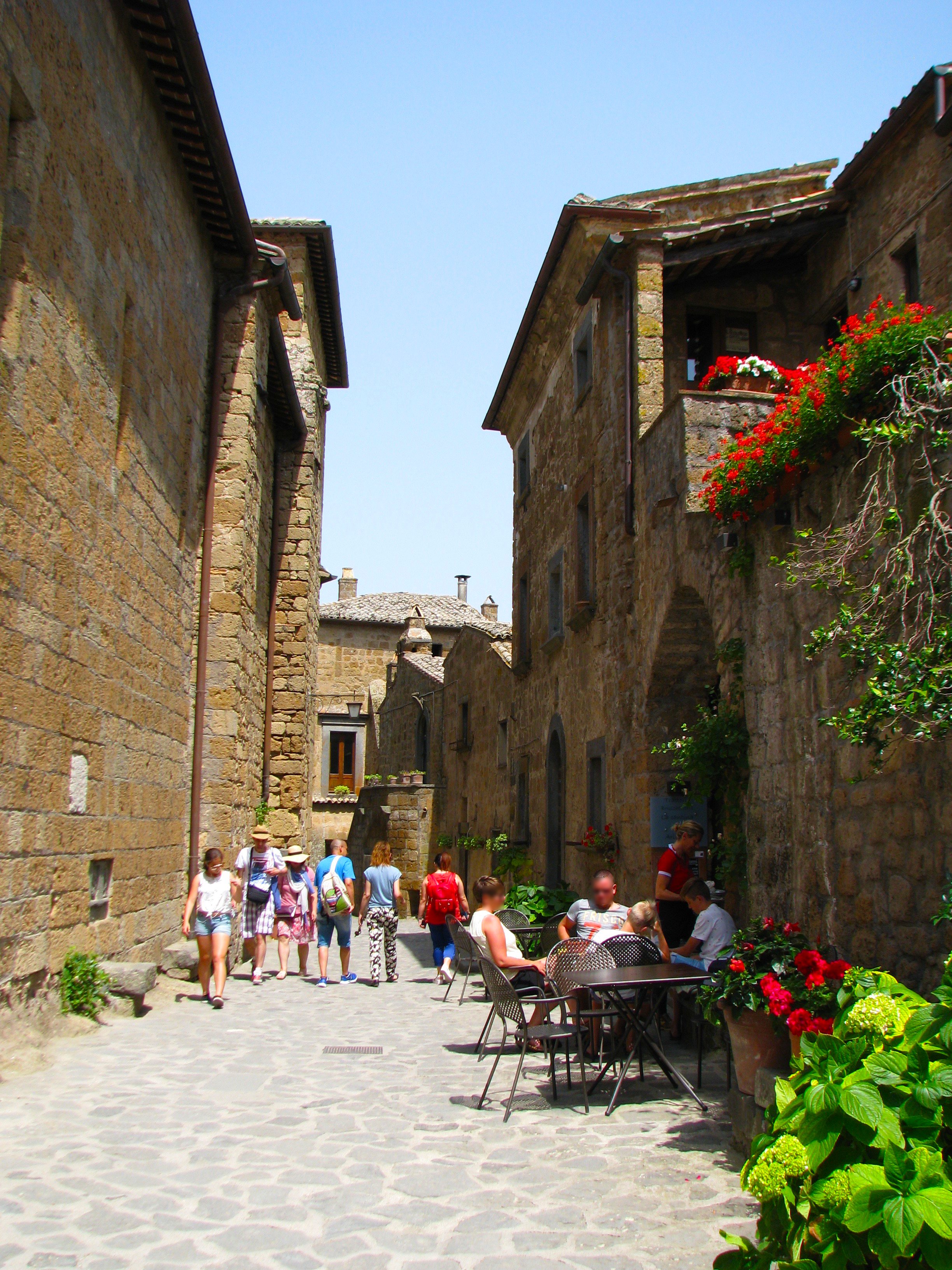 When you arrive in the main town of Bagnoregio, you find yourself driving along narrow cobblestone streets, as in many small towns in Italy, hoping that the oversized car you rented (which at the time seemed like a good idea with all the luggage you brought with you thinking about all the homemade cheese and olive oil you would take back with you) will not scrape along any of the buildings as you drive past them. It is a pretty little town filled with little shops and restaurants, and homes, most of which were built during the Middle Ages. There are not many hotels within the town itself but you can find many houses and apartments for renting short term in the surrounding towns.