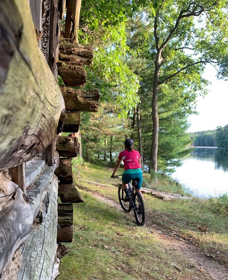 The O is an oldie but goodie! It's gone through many transformations and reroutes to arrive at the marked blue and black loops that exist today. As one of my close-to-home tracks, The O has a special place in my biker heart. Choose the 9 or 12-mile loop or a combination for traditional hand-cut single-track with plenty of roots, tight tree encounters, and a solid line-up of cuss-inducing hill climbs. Throw in some sandy sections and pristine views of Big Blue Lake and Lake Wolverine to round out a very picturesque ride. Bikers share the trails with scout groups, so be sure to check the website for dates when trail usage is permitted.