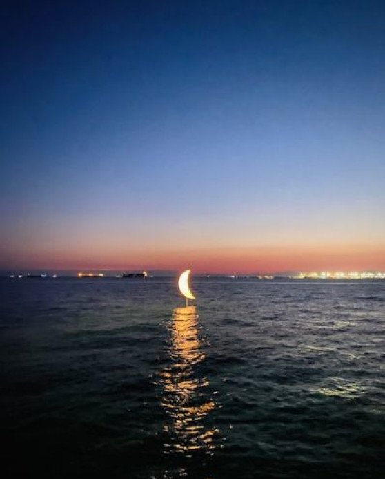 The moon is a sculpture created by the artist Pavlos Vasileiadis for the city of Thessaloniki. It represents a crescent moon positioned in the middle of the sea and represents one of the most popular and fortographed points of the city. Particularly fascinating at sunset and late in the evening as it is illuminated and looks like a real moon in the middle of the sea.