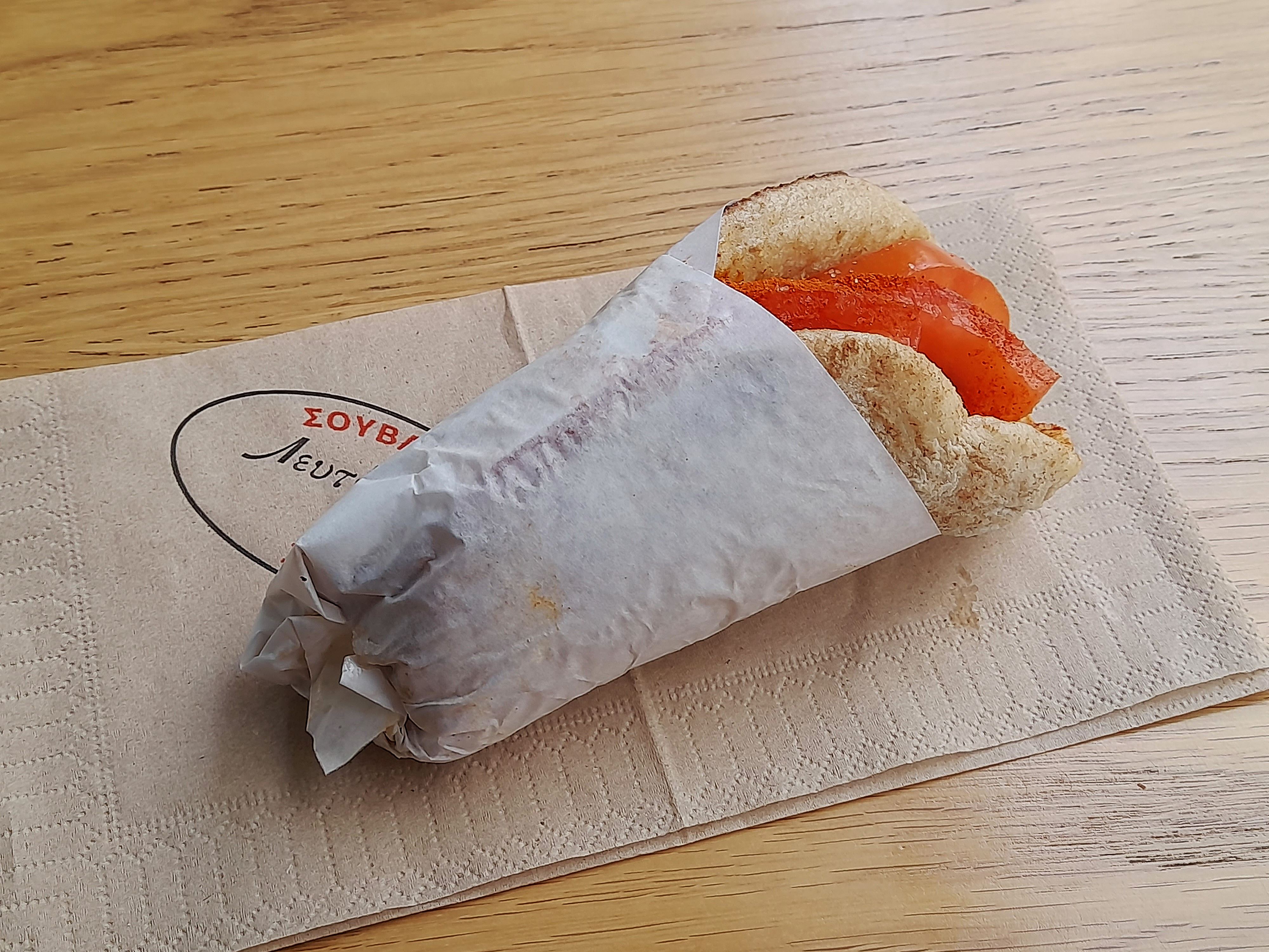 A few things haven't been said regarding Lefteris o Politis' souvlaki wrap. This restaurant has been serving delicious wrapped souvlaki to Athenians for over 70 years (since 1951). Lefteris has remained resilient in the Omonoia region, from when it was the hub of the city to when it was completely degraded and devalued, and now that the area is taking its first steps towards a better future. The wrap was originally made with lamb, but since the 1980s, it has been produced with a wonderful beef burger (bifteki in Greek). A well-grilled pita, a juicy burger, tomato, and onion make a unique and delicious combo. (Satovriandou 20, Omonoia - Athens)