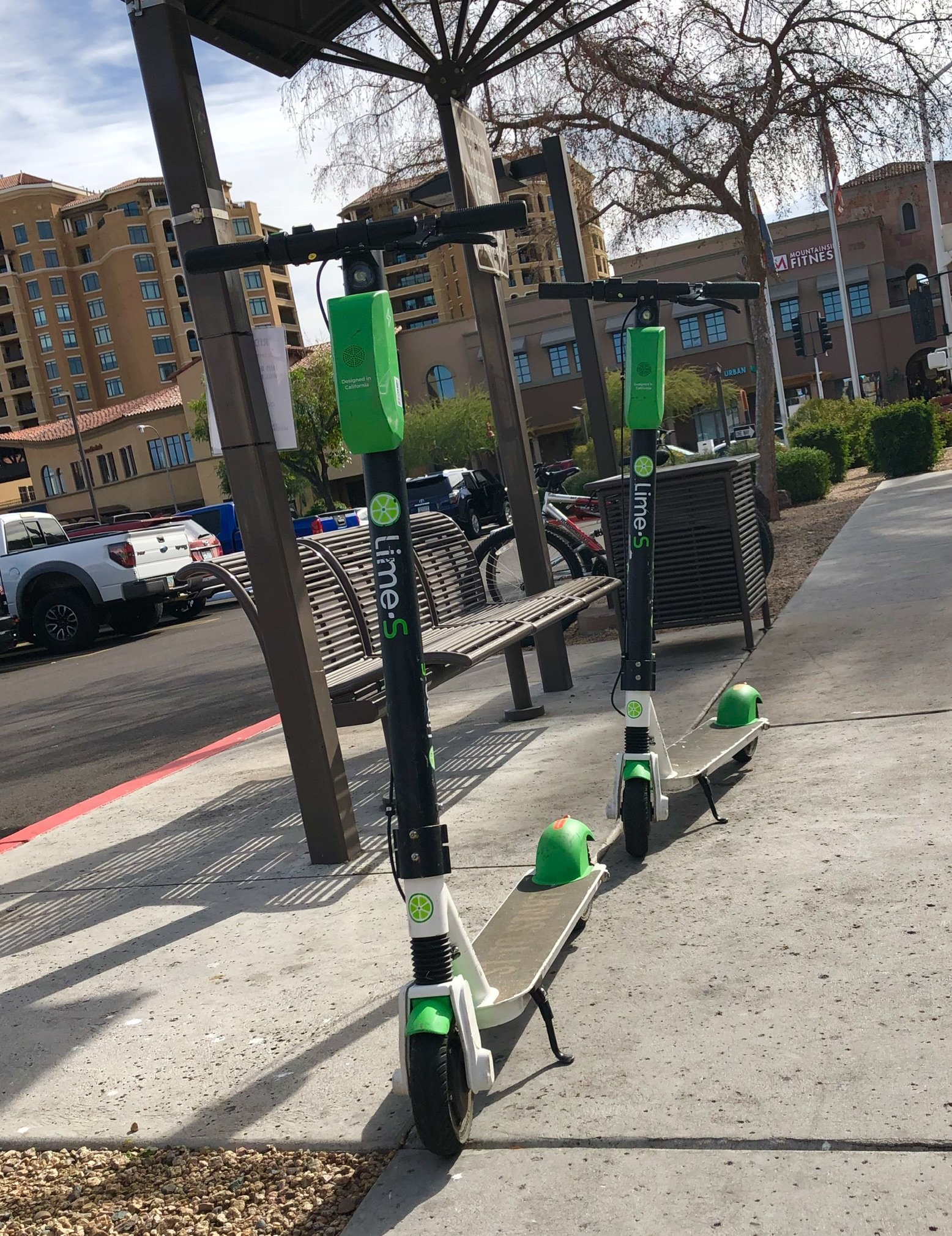 There seem to be countless options available to those who just want to roll with it. In Scottsdale and environs I have encountered a number of companies for bike rentals, including Jump, which is an extension of Uber, and Lyft. There are Razor Scooters for those who want to sit and scoot. Lime, which is, you guessed it, lime coloured, has both scooters and motorized bikes. Bird scooters are available in some places, but are not as ubiquitous as the others.
