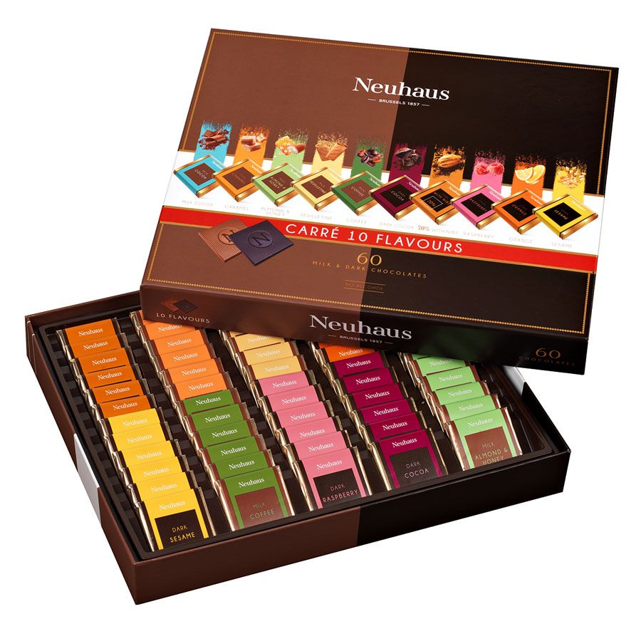 The individually wrapped, bite-sized Neuhaus Carrés, a symbol of the Belgium chocolate tradition, provide the ideal present for chocolate lovers.
