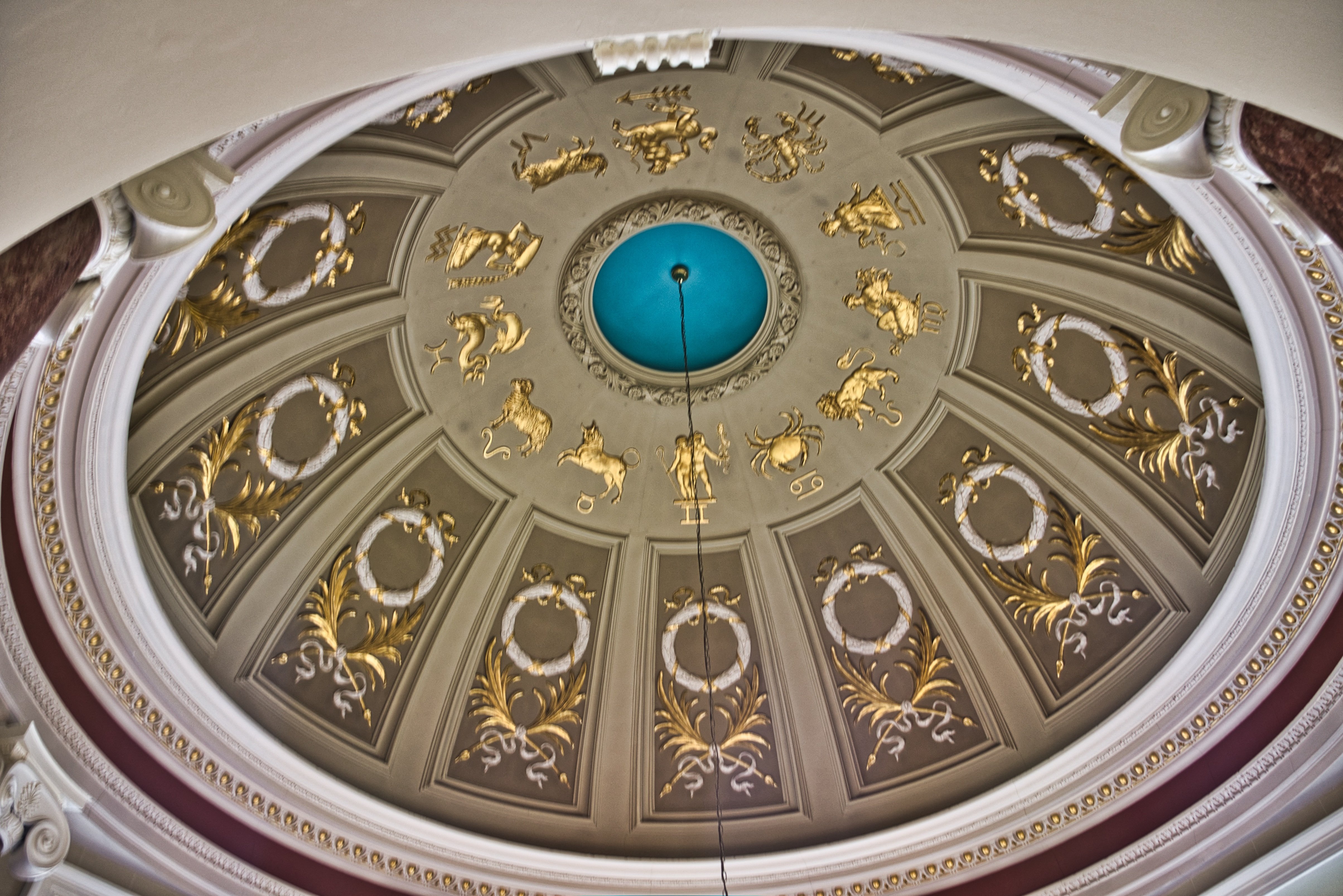 On the ceiling of the Rotunda is the impressive dome decorated with the zodiac